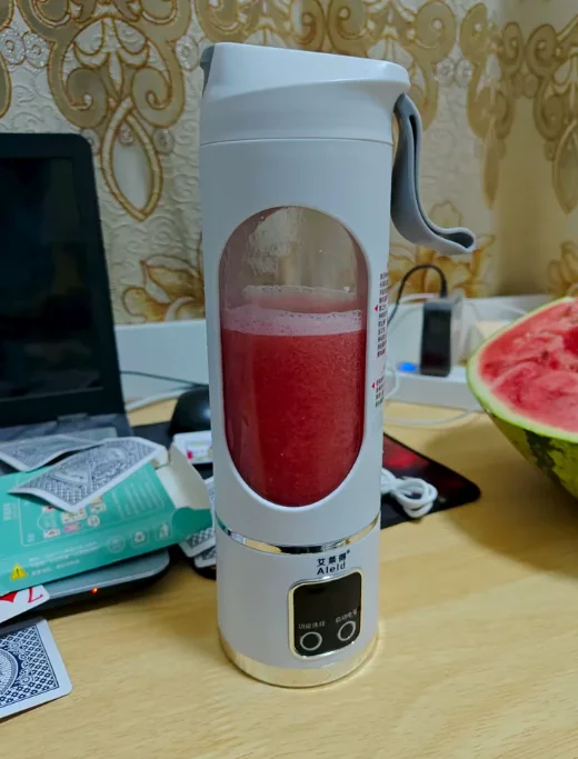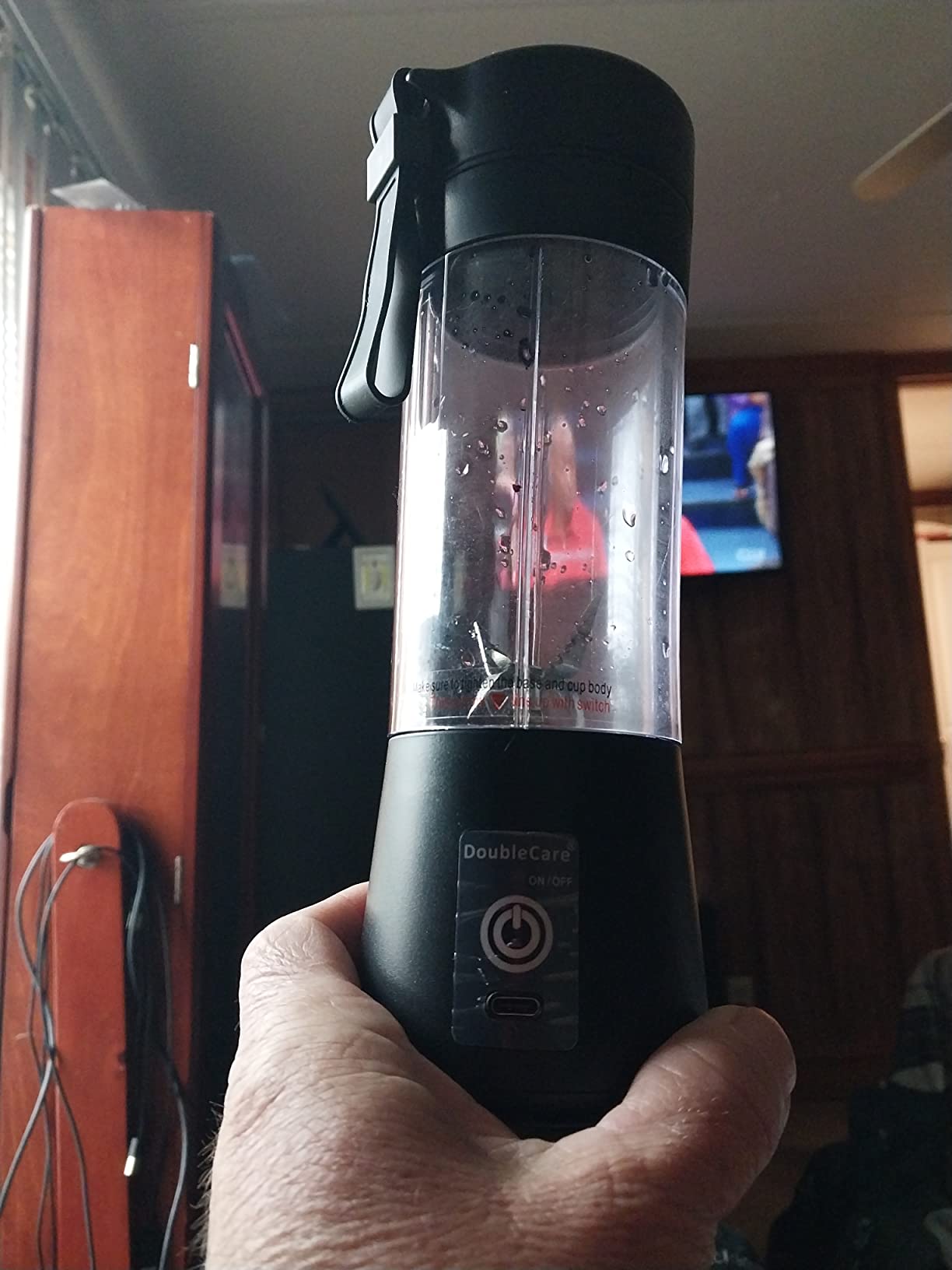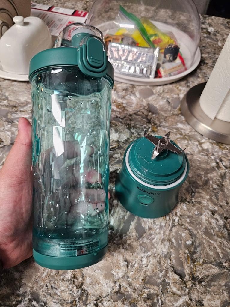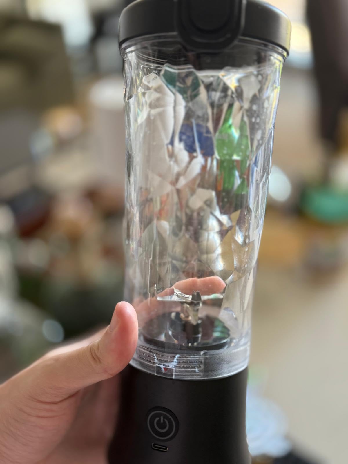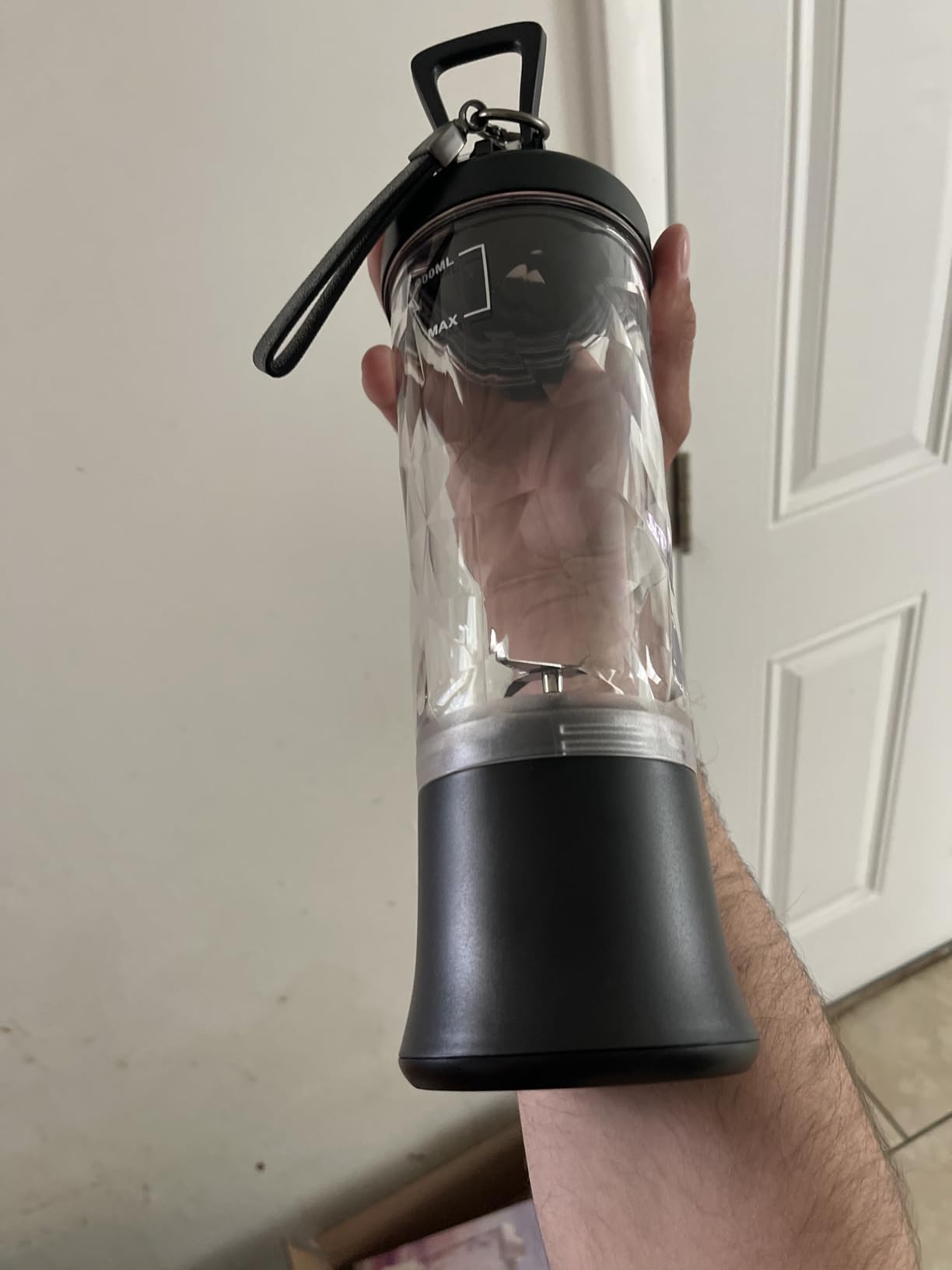 Great size for travel and gym. Battery lasts long, blends frozen fruits well